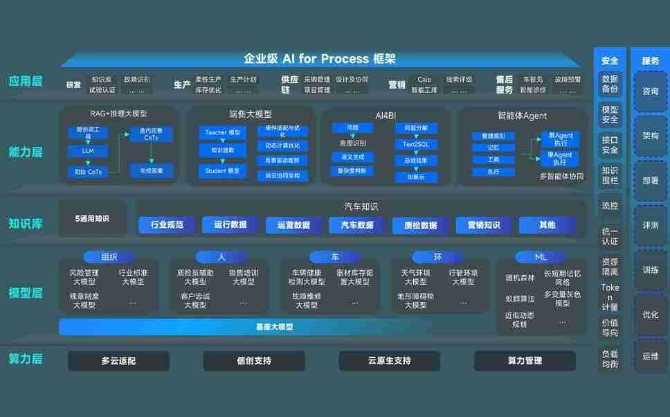 天辰平台问学智车解决方案是一套基于AI技术的汽车行业智能化系统,,,覆盖从底层算力到顶层AI应用的全栈方案。。。。方案由算力层、、、模型层和应用层组成:算力层,,,,方案支持多种一体机配置,,,,具备云端灵活部署、、、、多云适配以及动态优化计算资源的能力;模型层,,,,天辰平台问学平台版提供了企业级AI应用一站式构建与管理平台,,,支持基于后训练强化技术的汽车企业专属模型的训练、、、评测和运营;应用层,,,天辰平台问学DeepSeek版提供包括超级员工、、、、智能招采、、、智能营销、、智能客服、、、、AI for BI等一系列解决方案,,可助力汽车行业实现数字化转型,,,让管理更智能、、、、响应更敏捷。。